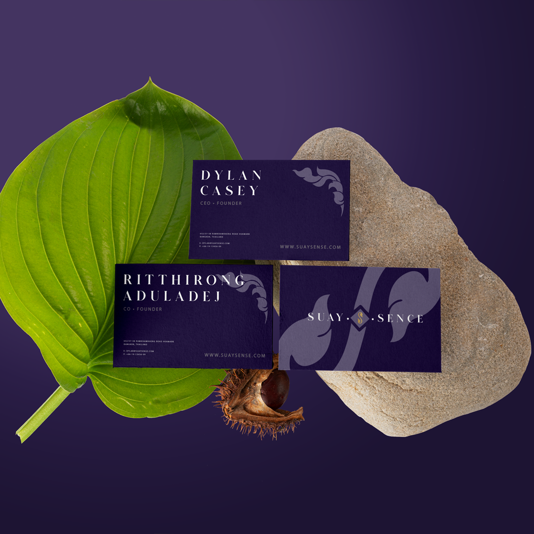Designed packaging and brand collateral for Suay Sense, focusing on creating clean and memorable printed materials that strengthen the brand’s visual identity.